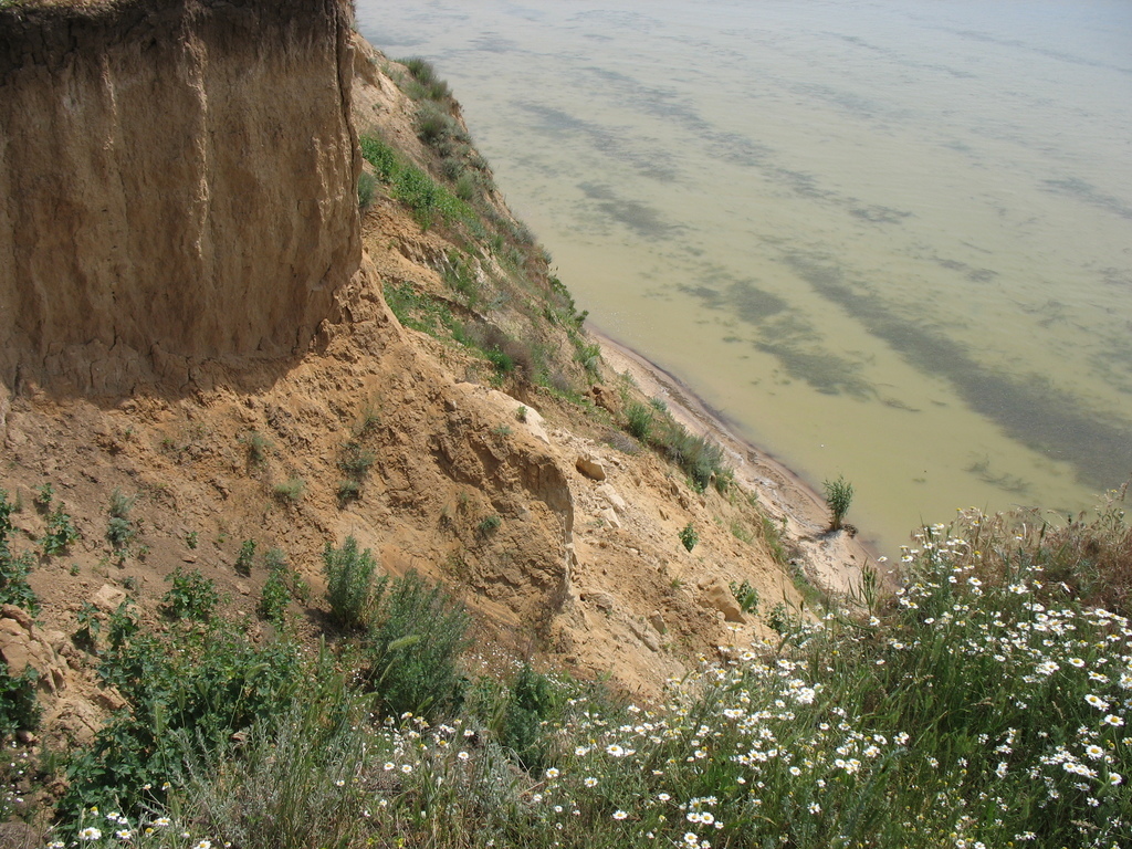 Чем дальше к Александровке я продвигался, тем ниже становился обрыв и скоро стал сравним с человеческим ростом. Здесь уже есть небольшие холмы и, наверное, было бы интересней ехать поверху все это время. Но так уже получилось.