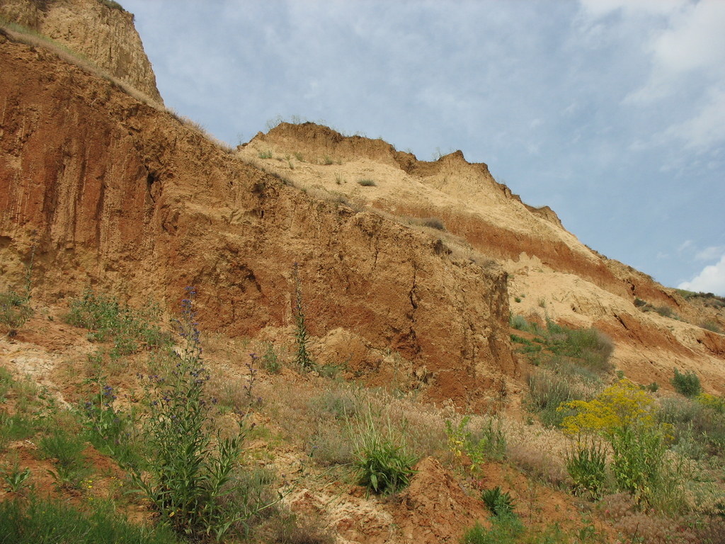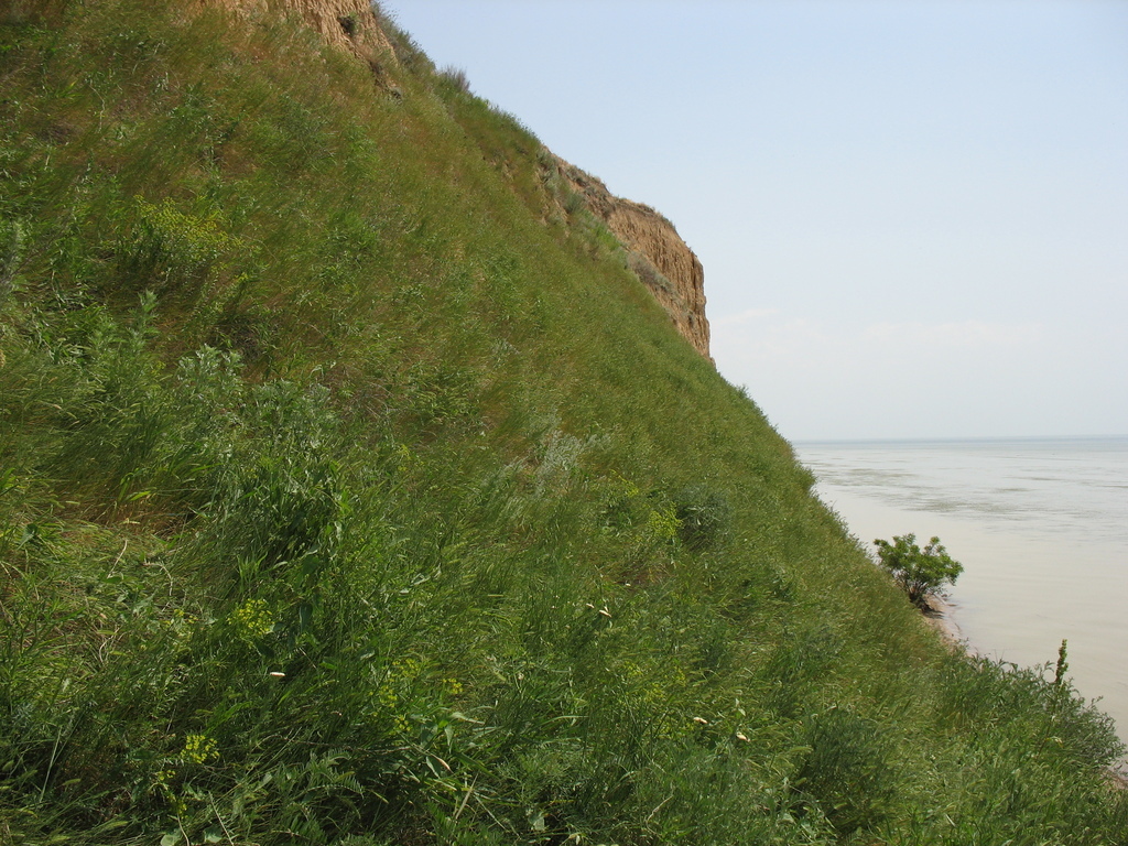 Чем дальше к Александровке я продвигался, тем ниже становился обрыв и скоро стал сравним с человеческим ростом. Здесь уже есть небольшие холмы и, наверное, было бы интересней ехать поверху все это время. Но так уже получилось.
