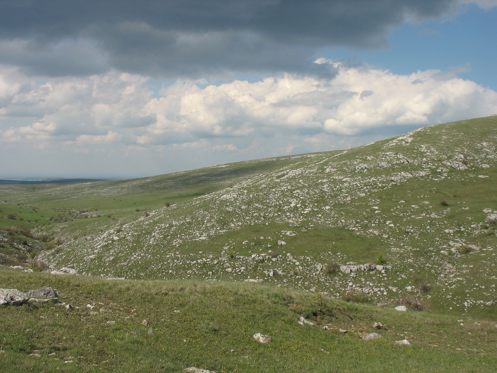 После посещения Бузулука было запланировано посещение другой, более серьезной пещеры – Крубера. Вход в нее представляет из себя шахту глубиной что-то около 40 м. Дальше идет система разветвленных ходов, но я почему-то для себя решил, что не буду её посещать. Не знаю почему. Для первого раза хватит и Бузулука. Пока все были заняты посещением пещеры я оставался в лагере да гулял вокруг по Караби, делал снимки, пытался вжиться в саму её атмосферу. Чем-то мне понравилось карабишное представление: припорошенные камнями склоны холмов, неиспорченная дикость, вольность ветра, бархат трав. Всё это помогает оторваться от рутины и по-другому посмотреть на свою жизнь и свое место в этом мире.
